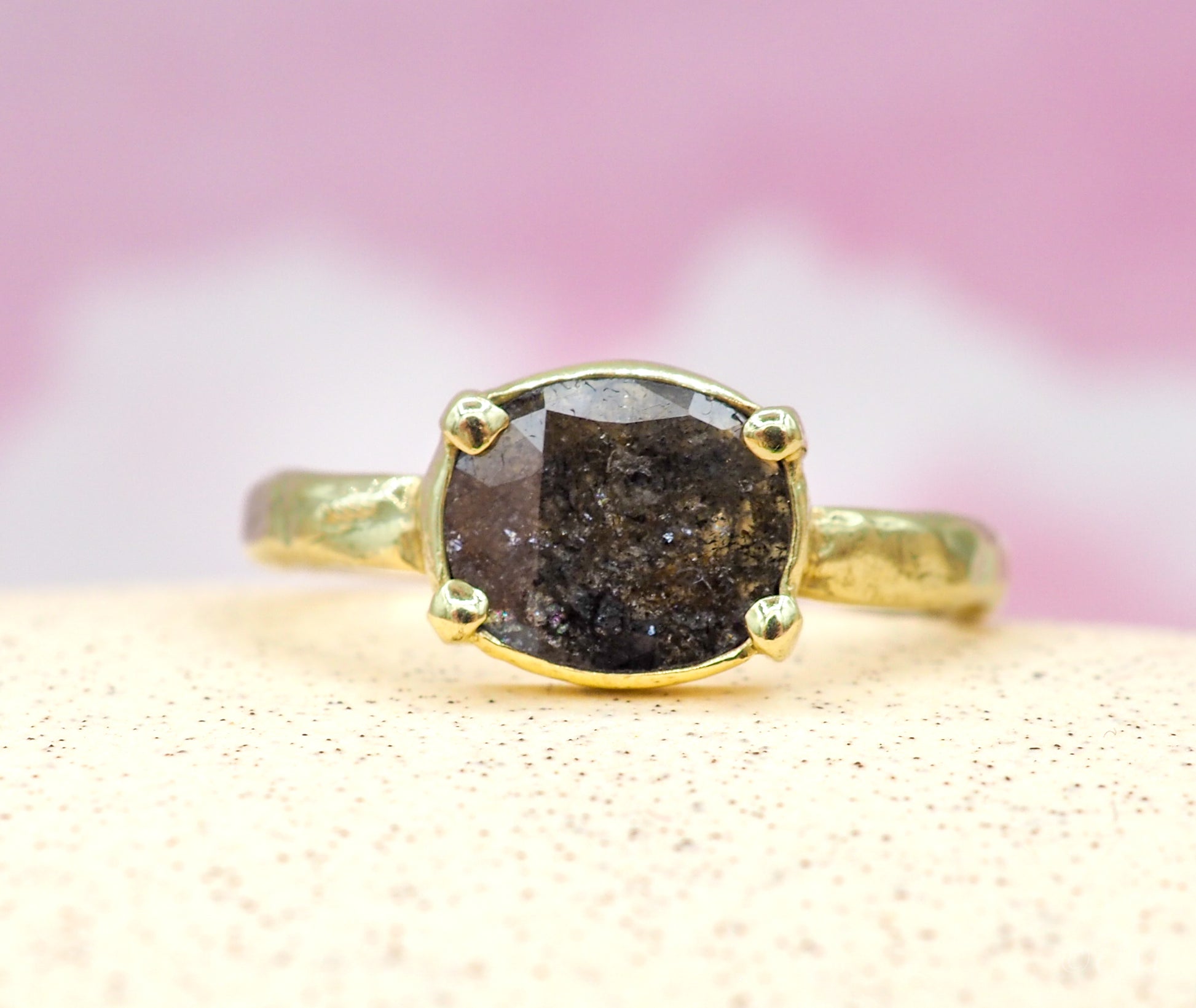 Gouden Ring met Unieke Salt and Pepper Diamant – Subtiel & Mysterieus