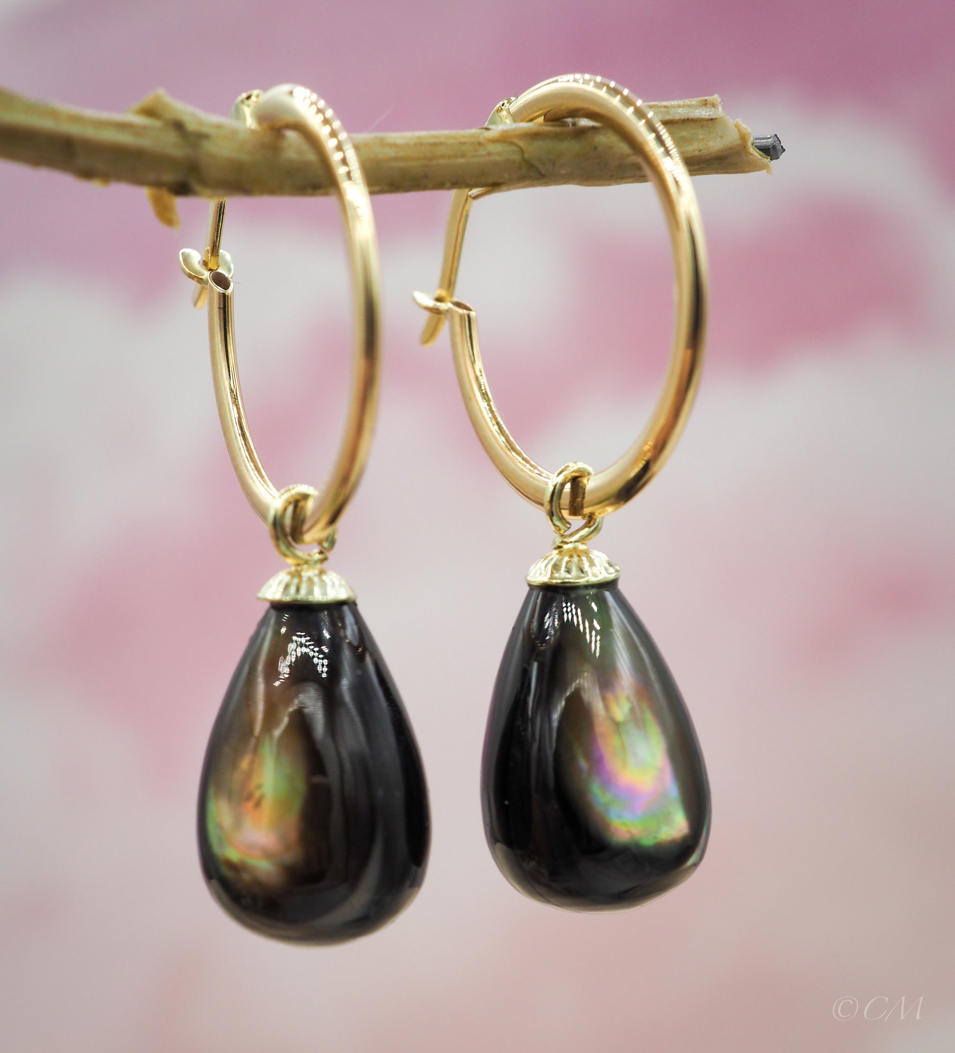 Gouden oorringen met parelmoer druppelhangers