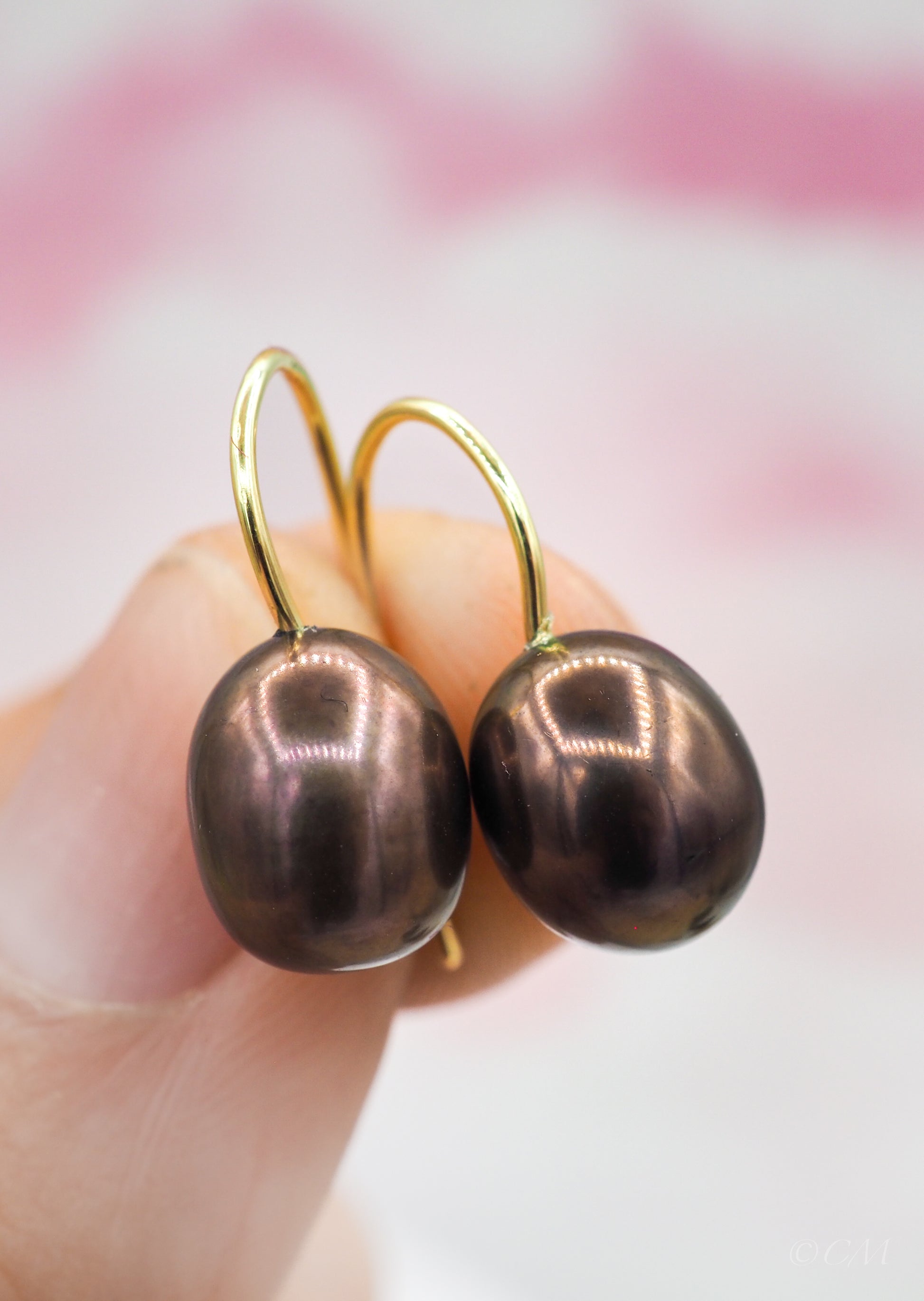 Mooie gouden oorbellen met zoetwaterparels. Deze elegante oorbellen hebben een subtiel haakje van 14 karaat goud, waaraan een auberginekleurige zoetwaterparel hangt in een verfijnde druppelvorm. De combinatie van warme goudtinten en de diepe glans van de parel maakt deze oorbellen tijdloos en stijlvol — perfect voor een bijzondere gelegenheid, maar ook subtiel genoeg om dagelijks te dragen.