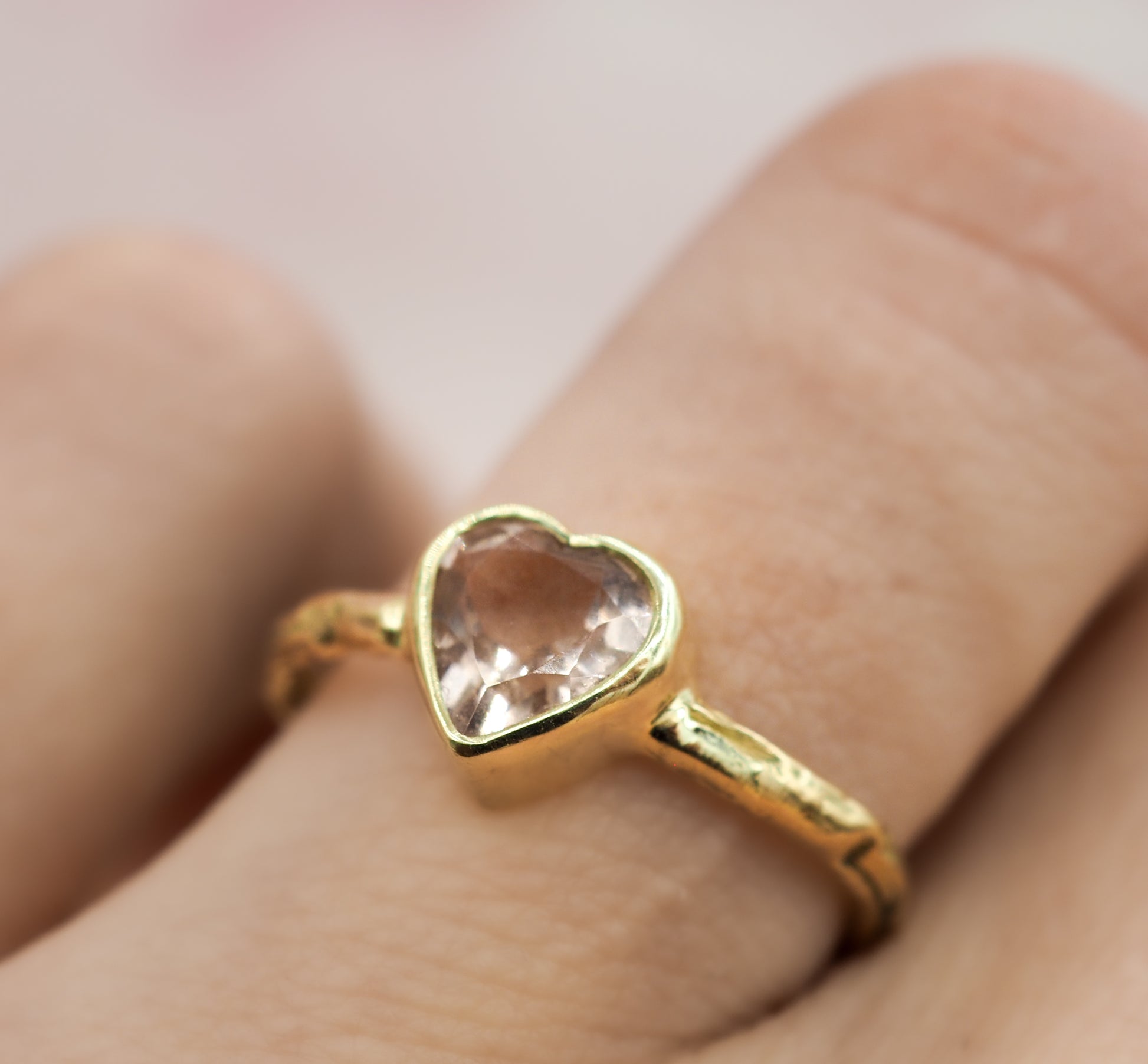 Gouden Ring met Hartvormige Morganiet – Organisch & Romantisch