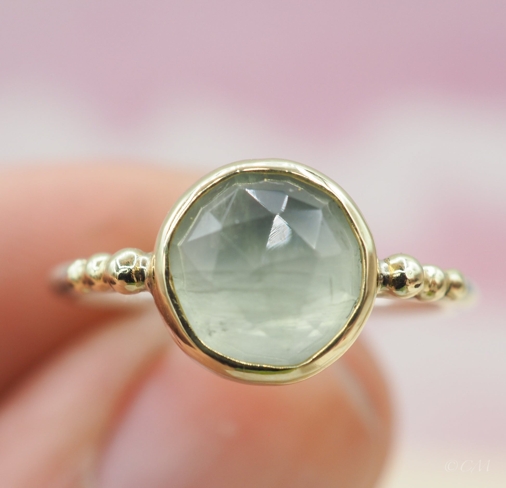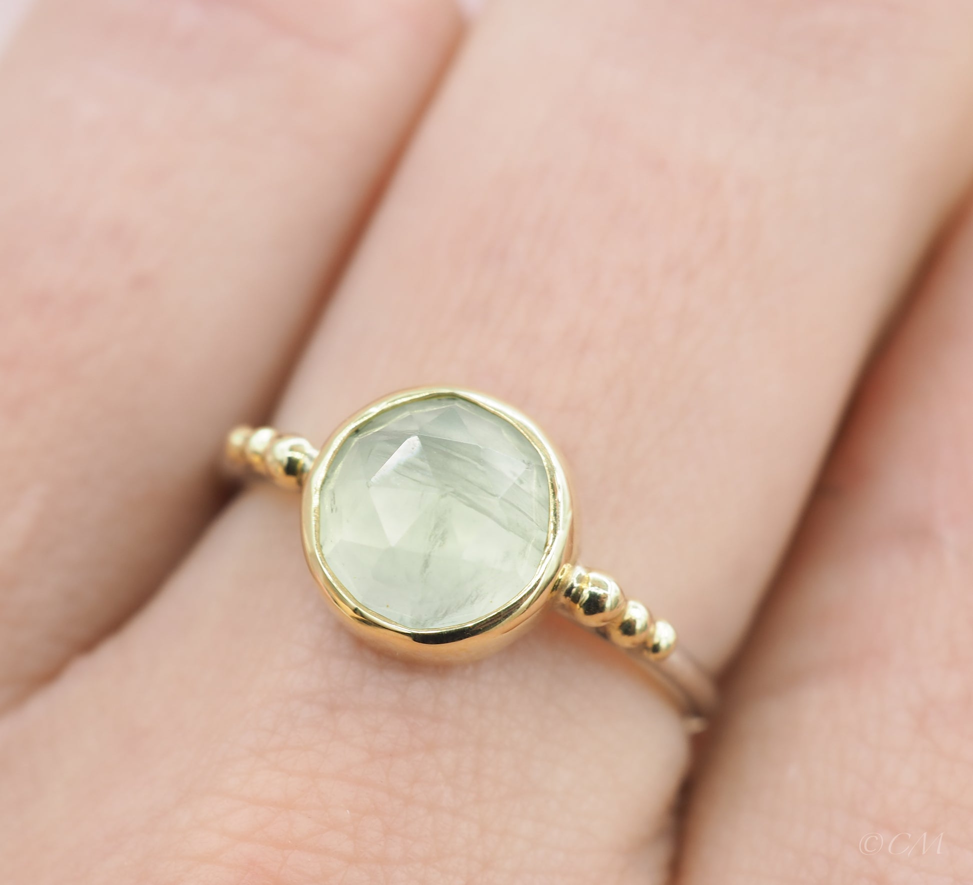 Ring met Prehniet, Goud & Zilver – Speels & Verfijnd