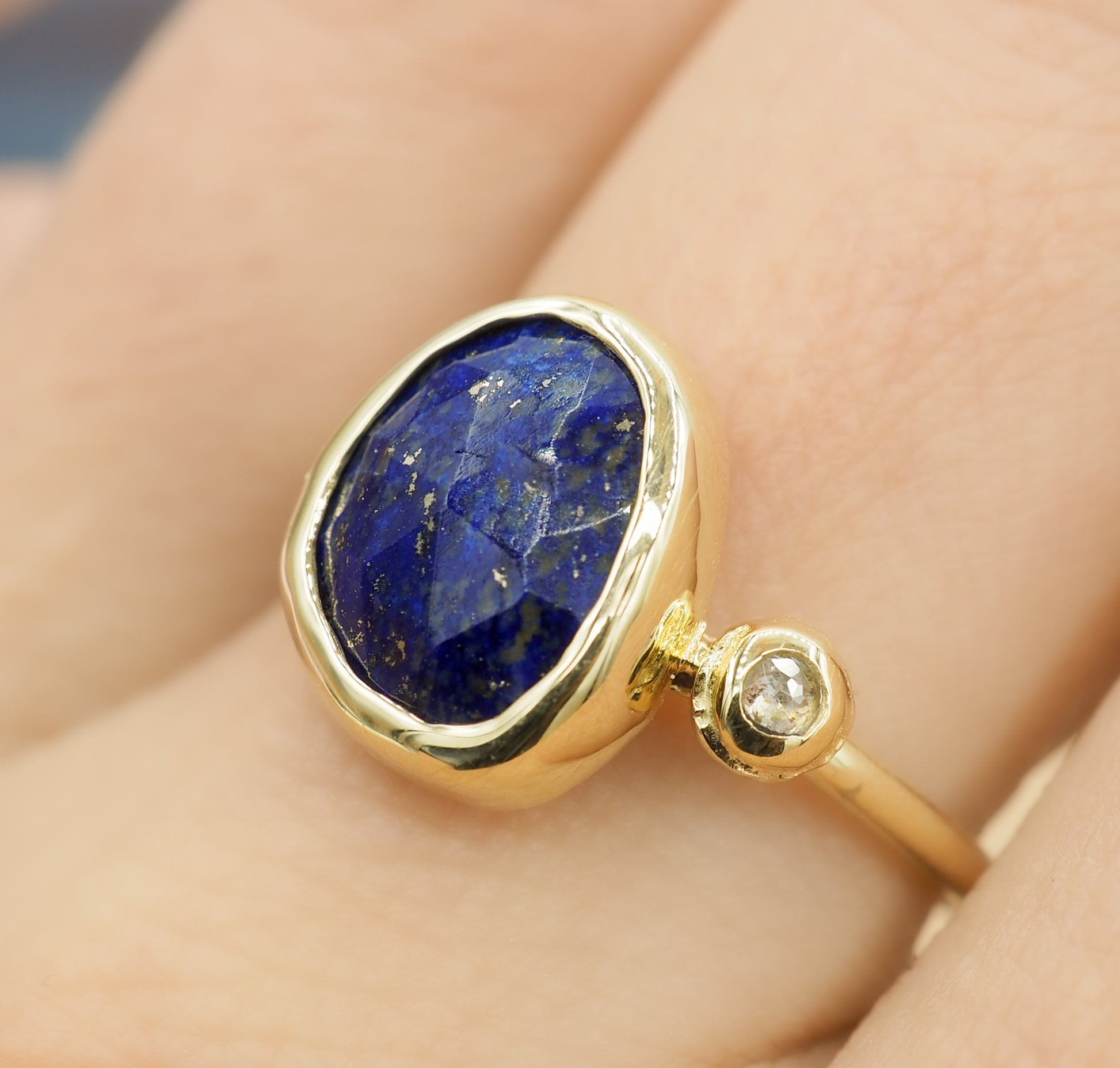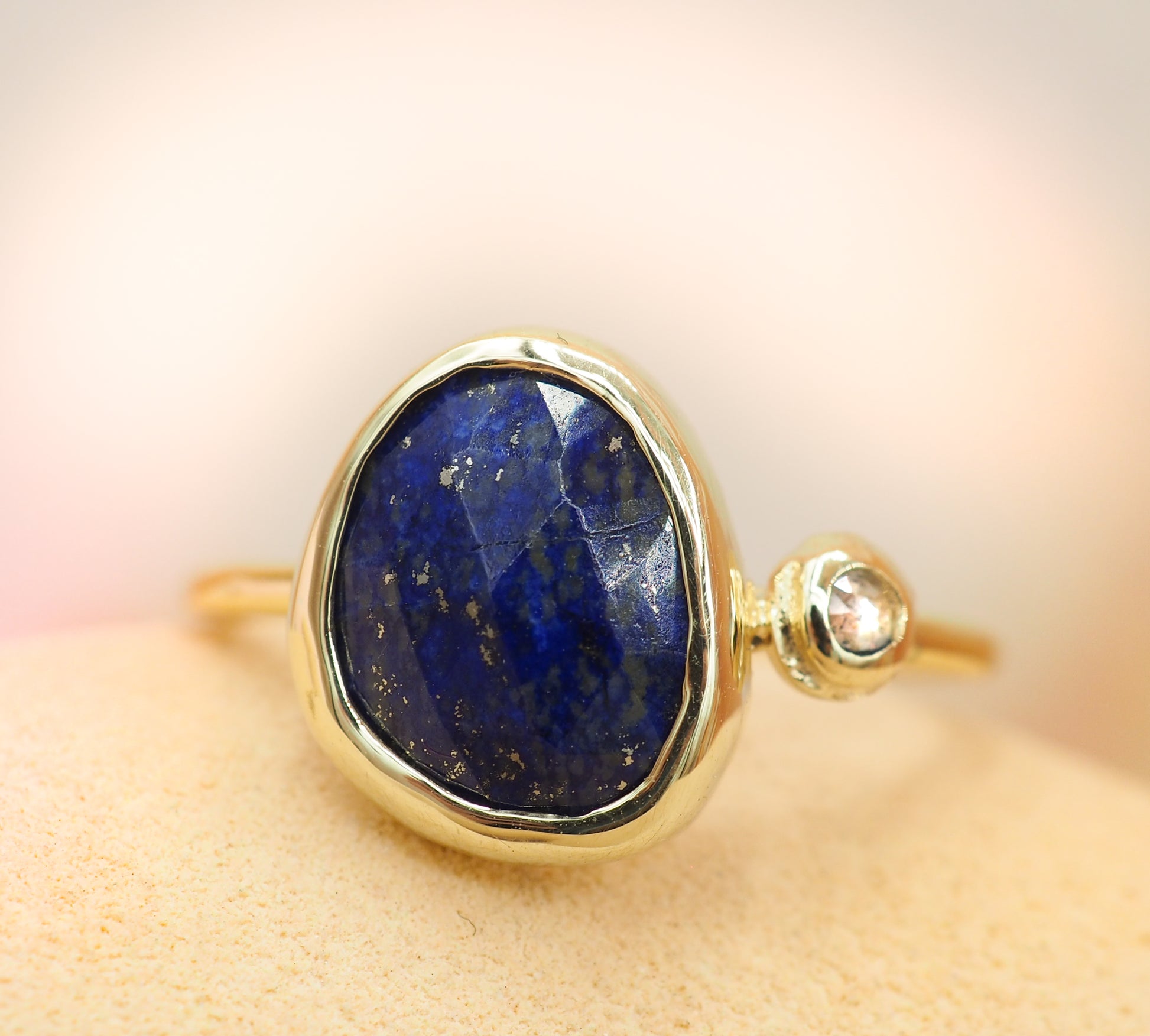 Gouden Ring met Lapis Lazuli & Roosgeslepen Diamant